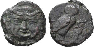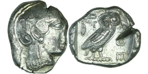 R/ ΑΘΕ. Chouette debout à droite, la tête de face. Le to ...
