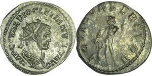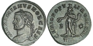 A/ IMP C VAL MAXIMIANVS AVG. Buste radié, drapé et cuirassé à droite.