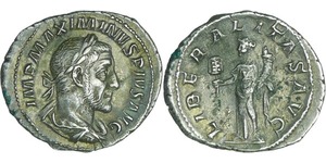 A/ MAXIMIANVS NOB CAES Buste lauré à gauche.