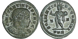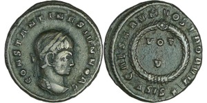 A/ DN FL IVL CONSTANTINVS NOB C. Petit buste lauré et cuirassé à gauche, tenant un foudre et un sceptre.