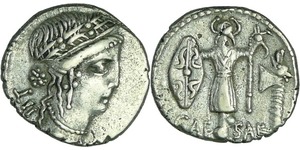 R/ CAESAR. Trophée accosté d'un apex et d'un bouclier.