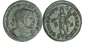 A/ IMP C MAXIMIANVS P F AVG Buste radié et cuirassé à droite.