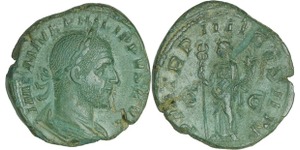 A/ IMP MAXIMIANVS P F AVG Buste lauré et cuirassé à droite.