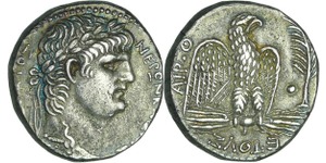 R/ AKTIOΣ AΠOΛΛON Buste lauré et drapé d’Apollon à droit ...