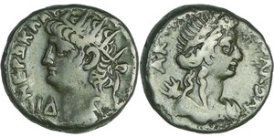 A/ NEPΩN KAIΣAP- ΣΕΒΑΣTOΣTête nue à droite.