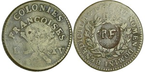 Lot 38/1139 FRENCH COLONIES :: Guadeloupe - Sol des colonies françaises surfrappé “RF” 1767 surfrappé en 1793