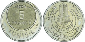 Lot 38/1157 FRENCH COLONIES :: Tunisie - Essai 5 francs 1954