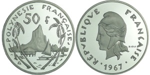 Lot 38/1153 FRENCH COLONIES :: Polynésie Française - Piéfort 50 francs 1967