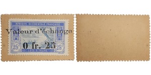 Lot 38/1138 FRENCH COLONIES :: Côte d’Ivoire - Timbre carton - 0 fr. 25 valeur d’échange