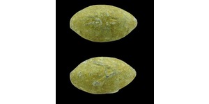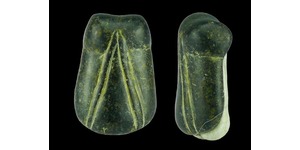 Scarabée en fritte dont l'empreinte représente un cœur entre 2 frises. Dimensions : 21*14 mm