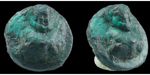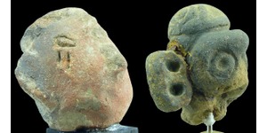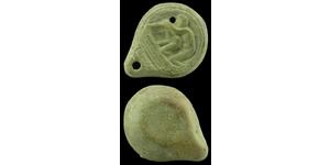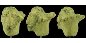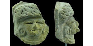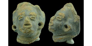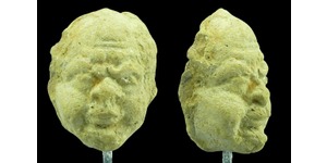 Tête grotesque ou de Ptah en terre cuite. Dimensions : 30*25 mm