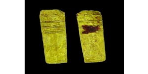Plaquette en or repoussé ornée de la représentation d'un pilier Djed. Ces fines feuilles d'or faisaient partie des rites ...