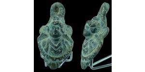 Amulette archaïque en bronze du génie Pazuzu. Protecteur-guérisseur des femmes enceintes et des possédés, mais aussi gar ...