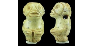 Idole en pierre beige "zemis", considérée comme le "lieu de résidence", représentant un homme agenouillé. Dimensions : 3 ...