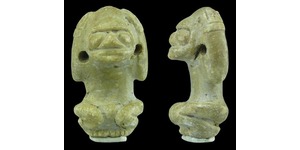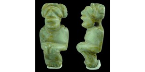 Idole en pierre beige "zemis", considérée comme le "lieu de résidence", représentant un homme agenouillé. Dimensions : 4 ...