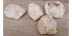 Lot de 4 outils façonnés sur galets de quartzite, présentant de beaux tranchants, proviennent de la collection Bigot. Di ...
